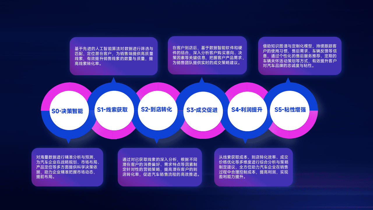 通过拓宽潜在客户来源、、优化线索分配并提高到店转化率,,,以增强销售效率。。。同时,,,,利用线索数据不断优化分析模型,,,,有效提升转化率,,,扩大营销影响力。。。